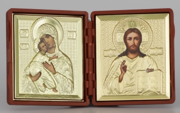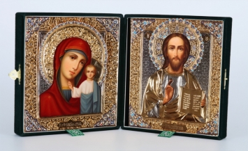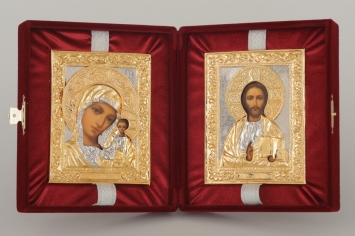 Складни живописные в футляре 24х30 масло, ризы №1, №25(бархат) Спаситель-Казанская БМ