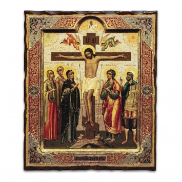 Икона на дереве 24х30 печать на плоттере Спаситель с предстоящими 1