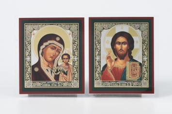 Икона в жесткой ламинации складень-двойник 7х12 двойное тиснение Спаситель-Казанская БМ 29