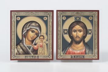 Икона в жесткой ламинации складень-двойник 7х12 двойное тиснение Спаситель-Казанская БМ 10