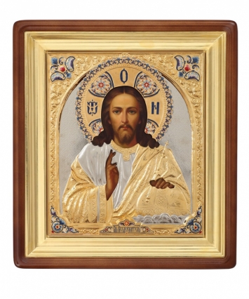 Икона живописная в киоте 30х40 масло, риза №33, эмаль, киот №1 Спаситель