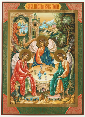 Икона на деревянном планшете 13х18 конгрев, плёнка (18мм) Троица 3 (с клеймами)