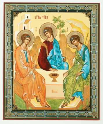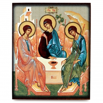 Икона на доске 9х11 объемная печать, лак Троица 2