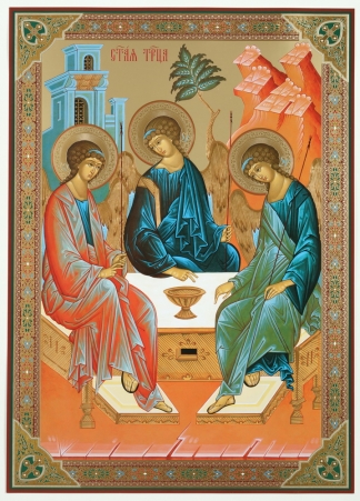 Икона на деревянном планшете 18х24 двойное тиснение, ДСП, ПВХ, БЗГ, упаковка Троица (Рублевская)