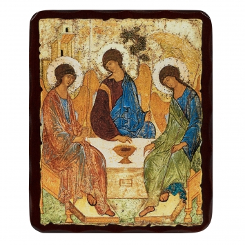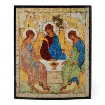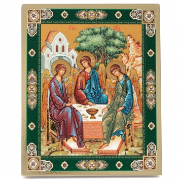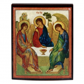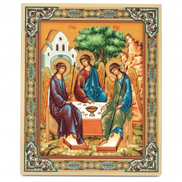 Икона на доске 12,5х16,5 объёмная печать, лак Троица (Рублевская)