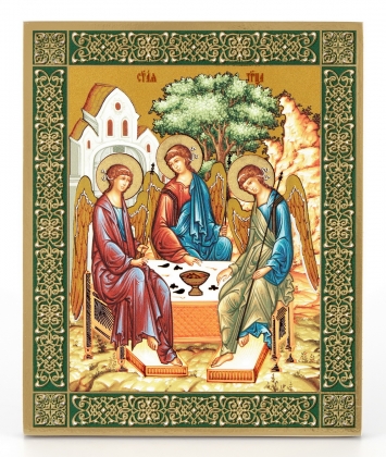 Икона на доске 22х26 объёмная печать, лак Троица 4