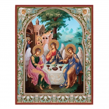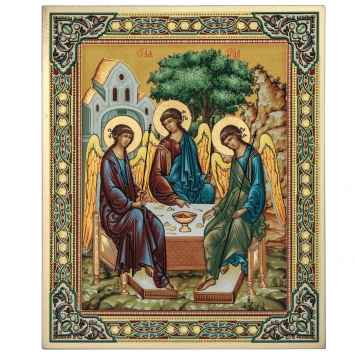 Икона на деревянном планшете 30х40 двойное тиснение, ДСП, ПВХ Троица (Рублевская)