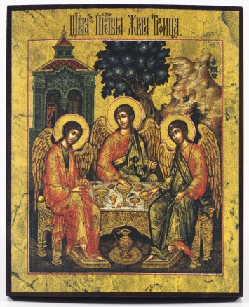 Икона на дереве 9х11 лак Троица 2