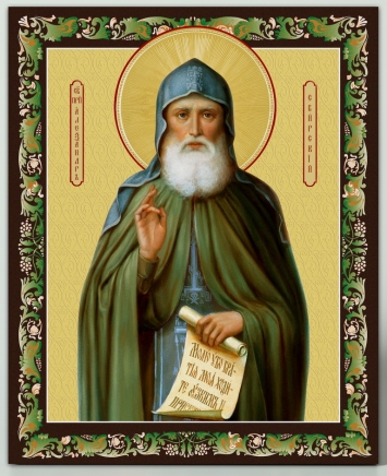 Икона на оргалите №1 18х24 двойное тиснение Сергий Радонежский (с клеймами)