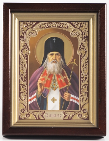 Икона в деревянной рамке №1 11х13 двойное тиснение Митрофан Воронежский