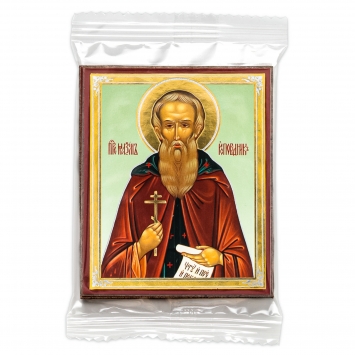 Икона в жесткой ламинации 5х8 с оборотом Серафим Саровский 2