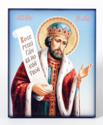 Икона на деревянном планшете 6х9 двойное тиснение, аннотация, упаковка Димитрий Донской 3