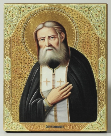 Икона на доске 13х15 объёмная печать, лак Серафим Саровский 2