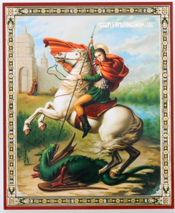 Икона на оргалите №1 11х13 двойное тиснение Чудо Георгия о змие