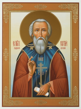 Икона на оргалите №1 30х40 двойное тиснение Сергий Радонежский 01