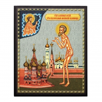Икона на доске 13х15 объёмная печать, лак Василий Блаженный