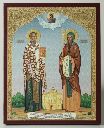 Икона на доске 13х15 объёмная печать, лак Кирилл и Мефодий