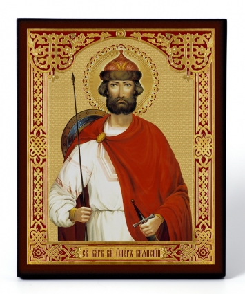 Икона настольная 10х12 на подставке, объемная печать Александр Невский