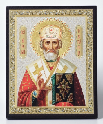Икона на оргалите №1 18х24 двойное тиснение Николай Чудотворец 31
