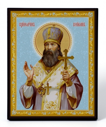 Икона на доске 13х15 объёмная печать, лак Вениамин