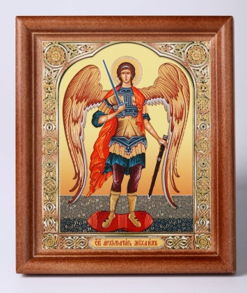 Икона в деревянной рамке №1 11х13 двойное тиснение Михаил Архангел (ростовой) 2