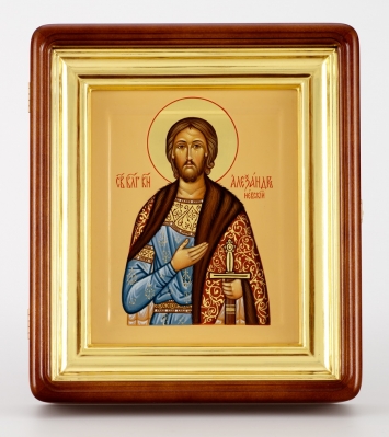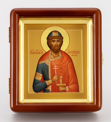 Икона живописная на доске в киоте 18х24 темпера, золоченый нимб, ковчег, киот №1 Александр Невский