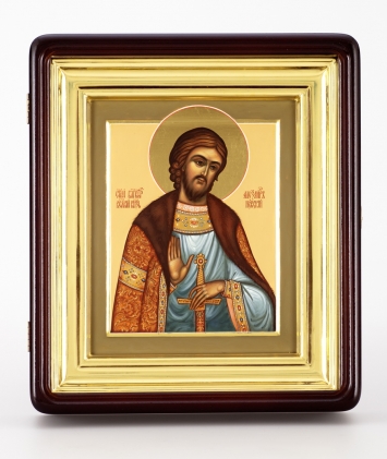 Икона живописная на доске в киоте 18х24 темпера, золоченый нимб, ковчег, киот №1 Александр Невский 1
