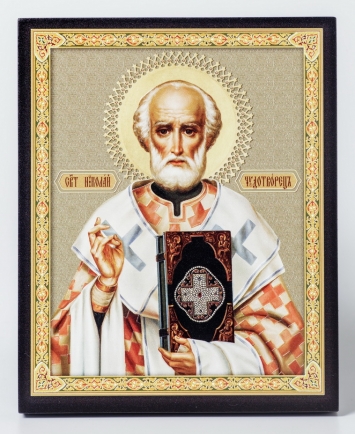 Икона на доске 13х15 объёмная печать, лак Николай Чудотворец 5