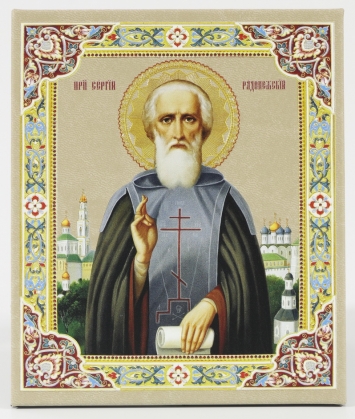 Икона настольная 10х12 на подставке, объемная печать Сергий Радонежский
