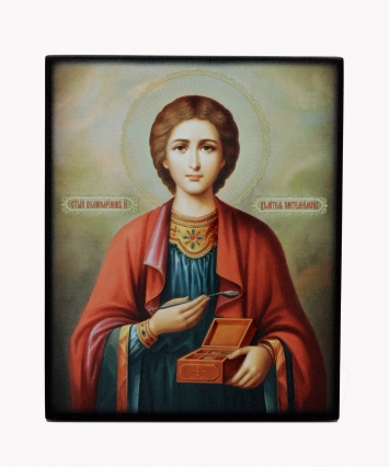 Икона на доске 13х15 объёмная печать, лак Пантелеимон 3