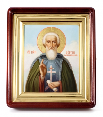 Икона живописная на доске в киоте 18х24 масло, золоченый нимб, киот №1 Сергий Радонежский