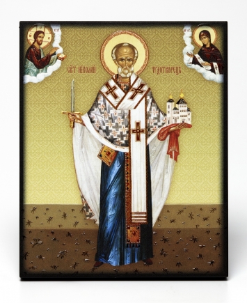 Икона на доске 13х15 объёмная печать, лак Николай Чудотворец 11