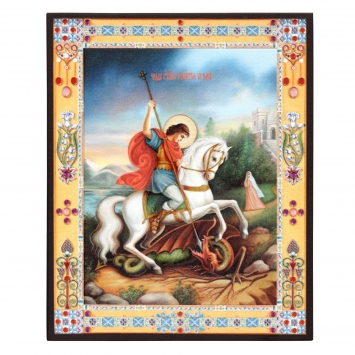 Икона на доске 13х15 объёмная печать, лак Чудо Георгия о змие №2