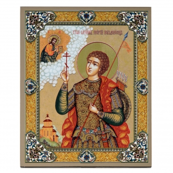 Икона на доске 18х24 золоченое покрытие, объёмная печать, лак Георгий Победоносец,