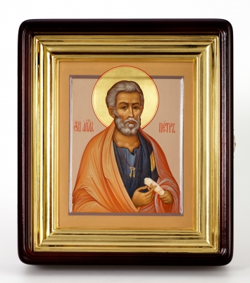 Икона живописная на доске в киоте 18х24 темпера, золоченый нимб, ковчег, киот №1 Петр Павел
