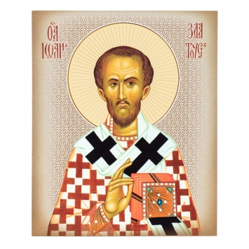 Икона на доске 18х24 золоченое покрытие, объёмная печать, лак Иоанн Златоуст