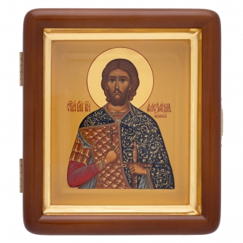 Икона в киоте 11х13 сложный, изображение на пластике Александр Невский поясной