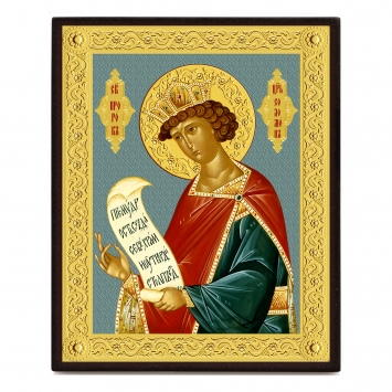 Икона на доске 9х11 объемная печать, лак Пантелеимон 3