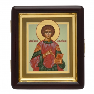 Икона фото в киоте 11х13 риза, киот №24 Пантелеимон