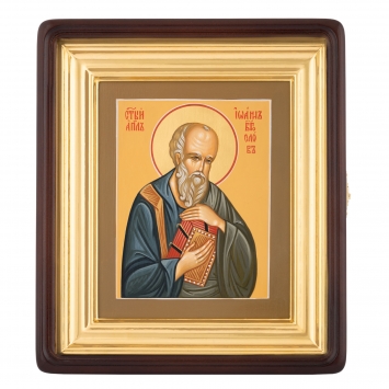 Икона живописная на доске в киоте 18х24 темпера, золоченый нимб, ковчег, киот №1 Иоанн Богослов, 03056