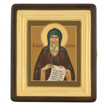 Икона живописная на доске в киоте 18х24 темпера, золоченый нимб, ковчег, киот №1 Антоний Печерский, 02287