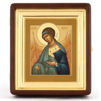 Икона живописная на доске в киоте 18х24 темпера, золоченый нимб, ковчег, киот №1 Архангел Гавриил, 01425