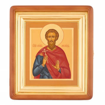 Икона живописная на доске в киоте 18х24 темпера, золоченый нимб, ковчег, киот №1 Леонид, 00727