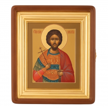 Икона живописная на доске в киоте 18х24 темпера, золоченый нимб, ковчег, киот №1 Никита, 00807