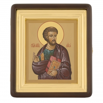 Икона живописная на доске в киоте 18х24 темпера, золоченый нимб, ковчег, киот №1 Апостол Лука, 01123