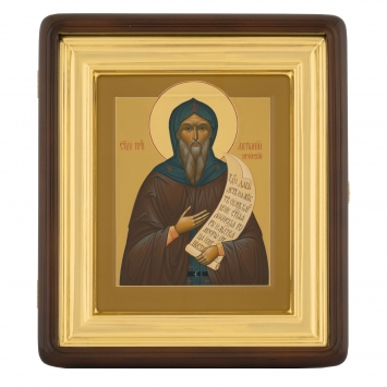 Икона живописная на доске в киоте 18х24 темпера, золоченый нимб, ковчег, киот №1 Антоний Печерский, 02365