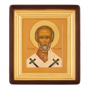 Икона живописная на доске в киоте 18х24 темпера, золоченый нимб, ковчег, киот №1 Николай Чудотворец, 02980