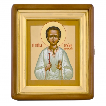 Икона живописная на доске в киоте 18х24 темпера, золоченый нимб, ковчег, киот №1 Артемий Веркольский, 00589