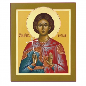 Икона живописная на доске 18х24 темпера, золоченый нимб, ковчег Анатолий, 03872