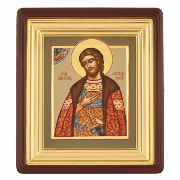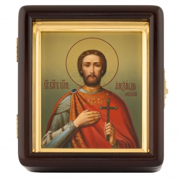 Икона живописная на доске в киоте 11х13 масло, киот №1 Александр Невский, 01927